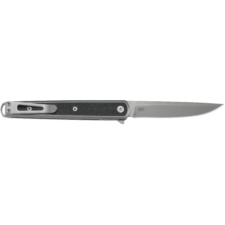 Ostrze typu plain edge o długości 84 mm wykonano ze stali nierdzewnej 1.4116 i wykończono metodą bead blast, co nadaje mu matowy wygląd i zmniejsza widoczność śladów użytkowania. Dzięki flipperowi można je szybko wysunąć jedną ręką, a system łożysk IKBS zapewnia płynność działania.