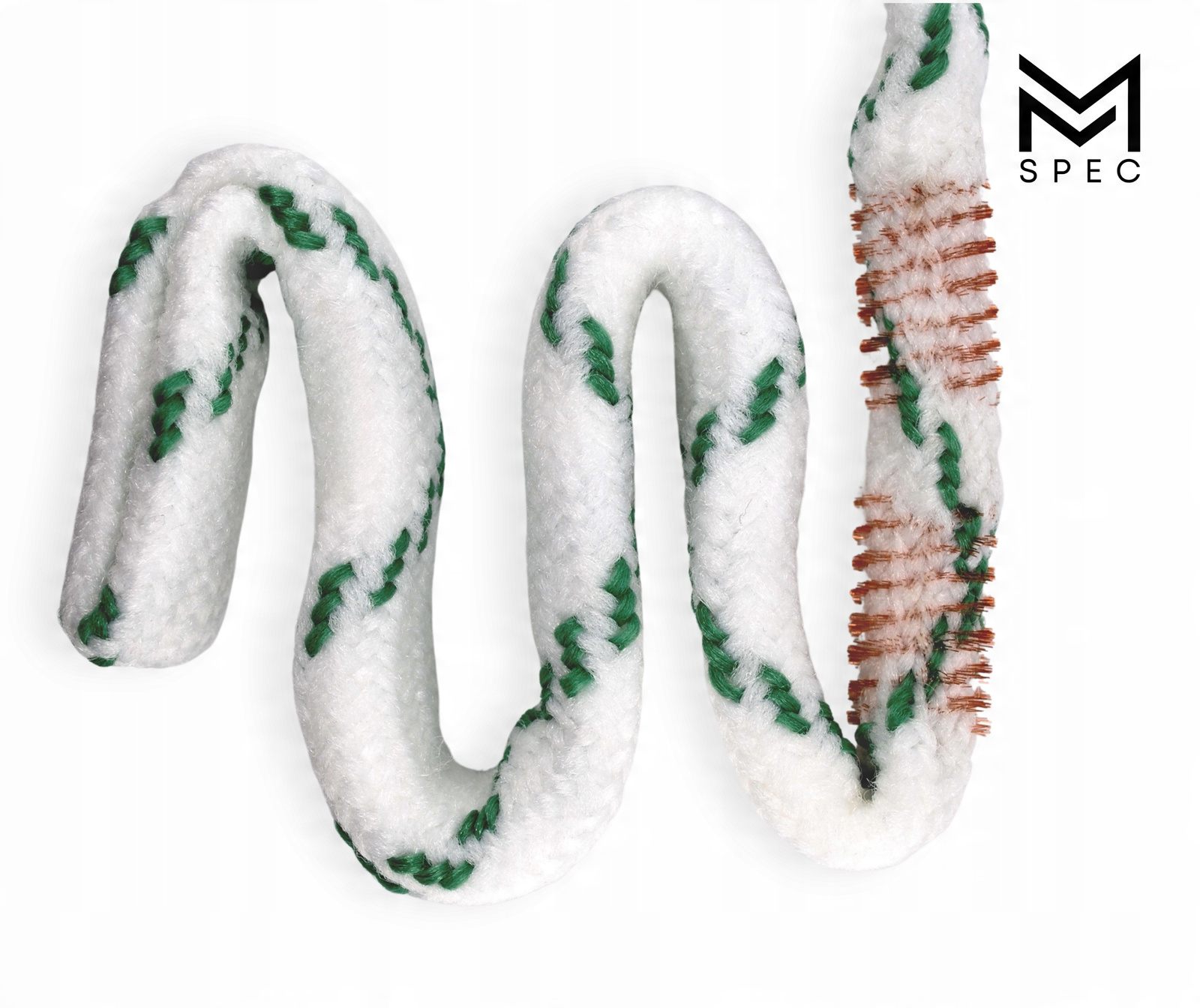 - Doskonała skuteczność – sznur wyposażony w szczotkę z brązu, która skutecznie usuwa osady z prochu, metalu oraz inne zanieczyszczenia zalegające w lufie.