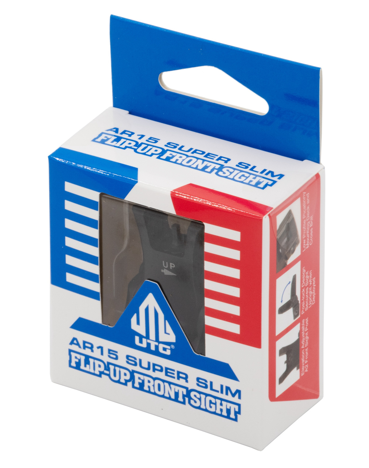 - UTG MNT755 muszka składana 45° flip up do AR15 na szynę Picatinny. CNC aluminium 6061-T6, łożyskowany mechanizm sprężynowy, regulacja słupka narzędziem, niskoprofilowa i odporna na odrzut jako pewny backup dla kolimatorów.