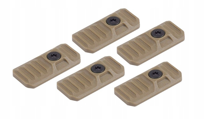 Zestaw pięciu zaślepek ochronnych na szyny M-LOK i KeyMod. Wykonane z lekkiego i wytrzymałego polimeru, dzięki czemu sprawdzą się w każdych warunkach.